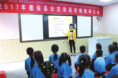 4月23日,德保县“2017年壮汉双语教学研讨活动”在该县都安中心校举行,这次活动由该县教育局主办,该县壮文学校协办。参加这次活动的有该县7所壮汉双语实验小学以及2所即将加入壮汉双语实验学校的领导和老师,还有来自靖西、平果、那坡等县市教研室以及壮汉双语学校的领导和老师,共136人。