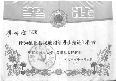 宣誓的队伍中,一个风华正茂的壮族青年心潮澎湃,热血沸腾!他与战友们一道举起右手,庄严宣誓,高呼口号!他就是象州县(当时称象县)马坪镇古大村人廖炳信。由于受进步思想影响,1949年11月,象州解放前夕,未满20岁的文化青年廖炳信参加象州自卫队石龙区中队,先后参加金秀大瑶山、宜山、象州石龙等多次剿匪战斗。为响应“抗美援朝、保家卫国”号召,他毅然告别年经妻子和未满周岁的女儿,报名参加中国人民志愿军入朝参战,与战友们一道从柳州鹧鸪江乘坐火车,历经七天七夜到达吉林安东。休息三天后,雄赳赳,气昂昂,跨过鸭绿江,日宿夜行,历时一个多星期,抵达朝鲜西海岸,编入“万岁军”38军113师炮兵独立团2营5连,担任负责填装炮弹的三炮手,兼连队文化教员。步兵变炮兵,一切从头学,廖炳信虚心向老兵学习,经过一个多月的辛勤学习和刻苦训练,很快掌握山炮炮击技术和相互配合要领,休整待命。