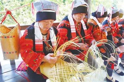金秀瑶族自治县六巷乡大岭村是典型的贫困村。近年来,随着该村民宿旅游的不断发展,该村群众充分利用当地丰富的毛竹资源,将毛竹手工制作成花色新颖、图案精美的竹编。这些竹编产品不仅成为备受欢迎的旅游产品,还能有效促进群众增收致富,仅此一项户均月增收就达千元以上。