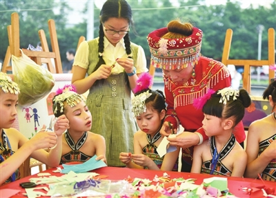 6月10日,罗城仫佬族自治县在民族文化广场举行仫佬族传统手工技艺展示活动,来自民间的艺人向广大群众现场表演和展示了仫佬族刺绣、土布靛染、扎染制作、纺织、剪纸、竹编、草编等技艺,唤起乡愁记忆,促进人们对非物质文化遗产的认识及传承意识。