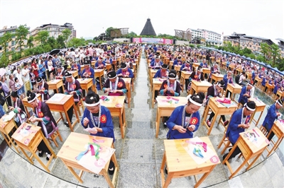 6月10日,柳州市文化新闻出版广电局在三江侗族自治县举办“巧手锦绣 独具匠心”传统工艺(民族剪纸刺绣)技能大赛,来自融水、三江两个自治县的200余绣娘飞针走线,同台竞技,尽展风情。