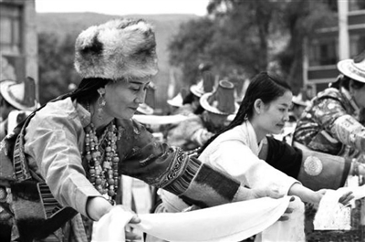 “水的头是泉源,衣服的头是领子,帽无缨子不好看,衣无领子不能穿”,在甘肃肃南裕固族自治县,流传着这样一首民间歌谣。六月初,肃南裕固族自治县特色村寨,裕固族人身着民族服装,载歌载舞,向前来游玩观赏的人们展示了古老的裕固族文化。裕固族传统服饰,衣领高、帽有缨,多为红、蓝、黑、白等对比强烈的色彩。2008年6月7日,裕固族服饰列入第二批国家级非物质文化遗产名录。