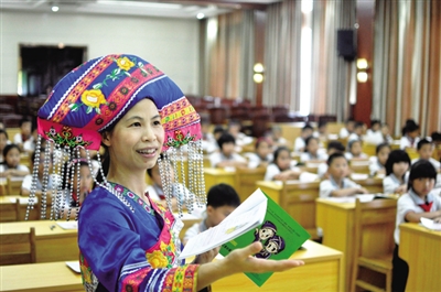 柳州市民宗委主任吴慧兰说:“我市认真贯彻党和国家的民族政策法规,多措并举做好壮族民族语言文字传承工作,还积极鼓励各族同胞互相学习语言文字,促进各民族平等团结和共同繁荣发展。”(特约记者 陈健明 摄)