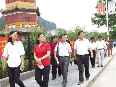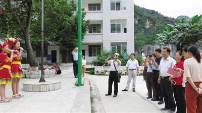 为贯彻落实中央民族工作会议精神和国家民委、教育部2017年度工作安排,推进第二批全国双语和谐乡村(社区)示范点建设工作,7月5日至7日,以国家民委教育科技司副司长周晓梅为组长的国家民委、教育部遴选考察组一行5人,前来我区河池市东兰县开展第二批全国双语和谐乡村(社区)示范点建设单位遴选考察工作。