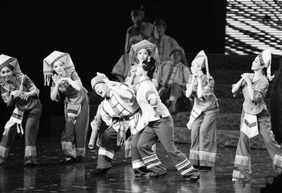7月23日,由广西德保县马骨胡艺术中心推出的壮剧《第一书记》在北京民族文化宫大剧院上演。该剧展现了广西一个贫困村的第一书记带领村民脱贫致富的历程。图为演员在北京民族文化宫大剧院表演壮剧《第一书记》。
