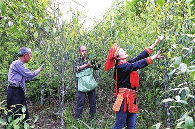 张进保说:“150年前,为躲避乱世的瑶族祖先,上公敢山种茶制茶,他们把茶叶拿到山外换粮食。广西解放后,公敢山上60多名瑶胞搬迁下山,到了大坪屯定居,现在全屯人口已发展了几倍。新一代瑶胞除了种粮,还大力发展各种林下经济,但他们中,大多数人还是把制茶手艺慢慢荒废了,也不愿意再到数十里外的公敢山护理那些老茶树了。只有六七户人家坚持每年清明前后上山一个多月,对老茶园做一些简单护理,现保留的老茶园还有200亩。茶园里的低产老茶树有的要淘汰砍掉,但老茶树是瑶胞的魂,大多不舍得砍,因此得以保留下来。老茶树每年会开花结果,茶籽掉落地上,次年就萌生新茶树。除了第一次种茶的瑶族祖先种下过几亩茶园,现在公敢山上的茶园都是由茶籽自生。