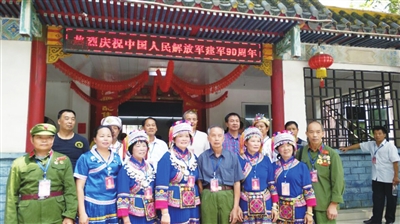 “军委主席习近平,今日沙场来点兵;推进军队现代化,筑牢钢铁新长城。水有源来树有根,八一来历要记清;一九二七这天里,南昌起义传枪声。”8月1日,都安瑶族自治县山歌协会老歌王深入参战老兵(抗美援越、对越自卫反击战)纪念活动现场,用壮、汉语深情演唱军旅山歌。歌王们与老兵一道共同回顾我军建军90周年辉煌历史,观看令人心潮澎湃的阅兵盛况,共同度过了一个难忘的建军节。图为歌王们与老兵在活动现场合影。