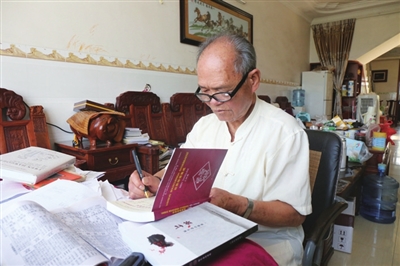 他就是上林县教育局原局长李守汉,一位从事文化事业、终生情系壮文,退休后20年仍在壮文化领域笔耕不辍、幽默快乐、慈善和蔼的84岁高龄老人,至今大家还亲切地叫他李局长。