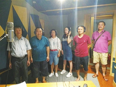 “阿多丸是个阴谋……”8月30日,广西电影集团少数民族电影译制中心金秀瑶族自治县瑶语电影译制演员正用瑶语译制喜剧电影《举起手来2——追击阿多丸》。