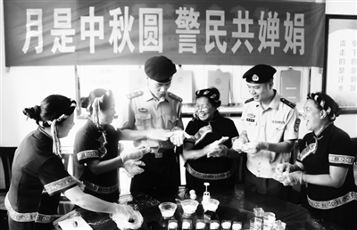 9月28日上午,崇左市公安边防支队凭祥边防派出所迎来了几位特殊的客人,凭祥市狮子山社区的几位壮族“兵妈妈”带着面粉、莲蓉、伍仁、蛋黄等馅料和烘箱来到警营,手把手教官兵们制作月饼,提前感受中秋佳节的氛围。