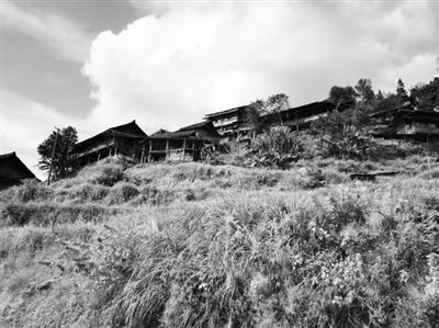 那天到寨里一看,有一栋近百年的吊脚楼被拆掉了,可是看来看去,找不到之前的地基。原来,吊脚楼本来就没平坦的地基,它是在悬崖边支架起来的,拆楼之后,只剩下陡崖。这个有千人的寨子,地无三尺平,至今仍没有一个篮球场,原因就是没有那么大的场地。可见,在这么陡峭的高山上修路,其险峻可想而知。