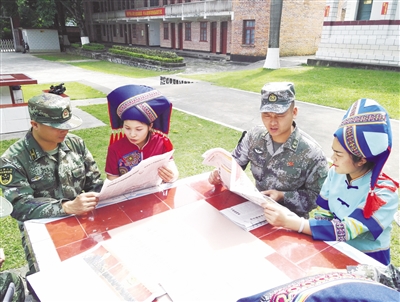 为及时让十九大精神深入驻地壮族同胞的心中,连日来,武警崇左市边防支队精心挑选了100余名文化素质高,通晓壮族语言、懂壮族风俗的官兵,组成20支“党的十九大”精神宣讲小分队,走进边境辖区壮族村寨,采取现场宣讲、印发宣讲资料、发放报刊等形式,面对面地向壮族同胞宣讲十九大精神,第一时间把党的声音传递给他们。