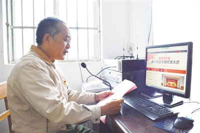 连日来,田阳县巴别乡“双语”广播站的义务播音员苏文丰用普通话和壮话播报新闻,将党的十九大精神及时传送到家家户户。