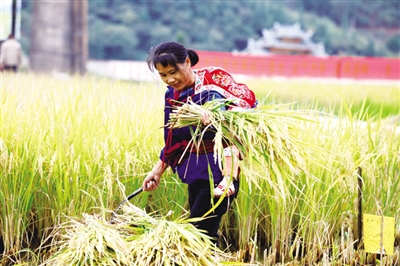 深秋时节,三江侗族自治县的万亩再生稻进入丰收季,村民忙于抢收稻谷,确保颗粒归仓。近年来,该县因地制宜,大力推广种稻养鱼特色优势产业,采用“超级稻+再生稻+鱼+螺+鸭+瓜果”等立体生态综合种养模式,收到了“一水两用、一田双收和稳粮增收”的产业扶贫喜人成效,让百姓增收脱贫。