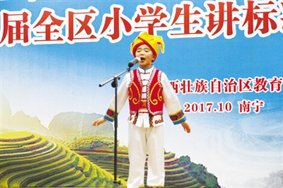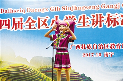 本报讯(记者 莫蓓蓓)10月30日至31日,由自治区教育厅主办的第四届全区小学生讲标准壮语故事比赛在南宁举行,来自全区壮汉双语小学114名小学生参加了比赛。
