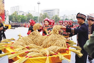 11月7日,罗城仫佬族自治县城区民族文化广场上锣鼓喧天,万众欢腾。当天该县在城区举行罗城第三届仫佬族依饭文化旅游节开节仪式,精彩纷呈的民俗文化表演节目吸引群众的眼球。依饭节是罗城仫佬族具有浓郁民族特色的传统节日,有着500多年的历史,它是仫佬族群众感恩还愿、庆祝丰收、祈求人丁安泰的传统节日。2006年被列入第一批国家级非物质文化遗产名录。