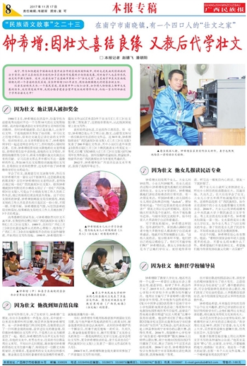 钟希增:因壮文喜结良缘 又教后代学壮文