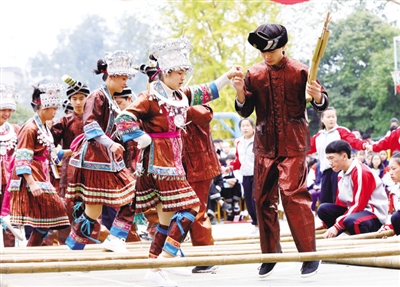 11月22日,三江侗族自治县民族高中举行民族传统体育运动会,全校学生参加花样竹竿舞、多耶舞、芦笙踩堂舞、背篓绣球等8个传统体育项目比赛,感受传统体育项目带来的乐趣。