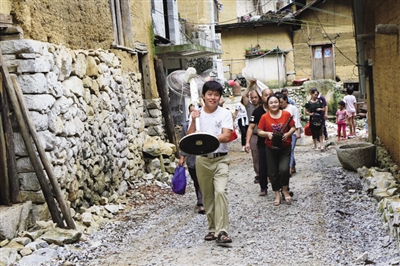 我们祖祖辈辈身居山旮旯,开门见山、出门爬山,由于路不通,山峒里的农户都是住土坯房,年久失修,大部分已经成了危房。这里土地是“碗一块瓢一块,丢个草帽盖三块”,每年收获的是干瘪的玉米,加上高山连绵阻隔,信息闭塞,手机信号不灵,几乎与世隔绝。尽管你们县乡帮扶工作队帮安了“锅盖”,电视节目还是模糊;你们深入我们山里农户家中,送鸡苗送葡萄苗送种子,指导发展产业。由于留恋故土情结,我与大家一样,不愿举家搬迁到外面安置,一心安居山里过着穷苦的日子。