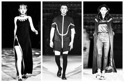 图为模特在T台秀上展示扎西设计的新式藏装。
