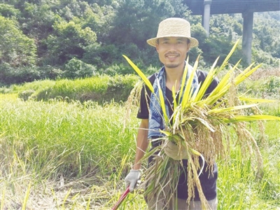 从那时起,他在自家的一亩田里试行自然农耕的方法,对稻田不施化肥农药,用传统的老稻种进行耕种。开始两年并不顺利,不打农药禾苗病虫害多收成很差,加上田地长期受到化肥的侵蚀导致肥力减弱,需要用有机肥料慢慢培养土地肥力。经过5年的不懈努力,他的一亩良田现在终于收成稳定,粮食基本能够自给自足。近两年还有了余粮,他就拿到南宁的“都市农圩”去卖,在“都市农圩”中他接触到推广自然农耕和有机食物的公益组织,并结识了很多志同道合的伙伴。