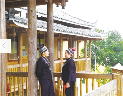 1月4日,自治区级非物质文化遗产项目——隆林“哥(侬)呵曲调壮族山歌”代表性传承人梁桂花(左)和一名壮族女子在古岳坡的一处民居阳台上切磋山歌,她在古岳坡开设了自己的工作室。南宁市青秀区南阳镇施厚村古岳坡是一个传统农业村。2015年,当地有关部门利用村民长年闲置的传统民居,引进文化项目打造古岳文化艺术村,走出一条文化振兴之路。目前,这里已建有文化艺术广场、民俗文化展示厅、文化艺术长廊、艺术家工作室、文创研发中心等,村容村貌焕然一新,吸引大批游客前来参观。