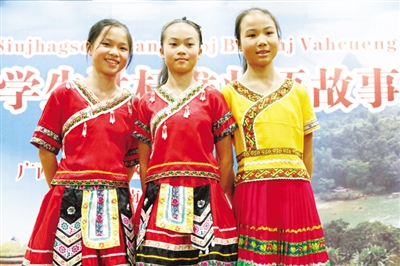 于是三个形影不离的好朋友一起排练,一起通过了初赛选拔,一起到南宁参加全区比赛。经过激烈的角逐,黄晨馨获得了二等奖,韦玉叶、廖嘉静获得了三等奖。领队老师说:“她们这三个奖项的含金量很高。黄晨馨作为一个刚上六年级的小姑娘,能够自编壮文故事、自导自演参加全区比赛,可见她的壮语文功底是实打实的。”