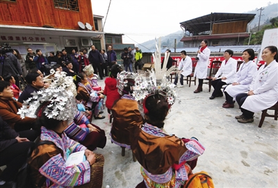 当日,国家卫生和计生委到融水苗族自治县融水镇大浪镇潘里村开展“三下乡”名医走基层活动。来自北京的5名医务人员面对面给当地数百名少数民族同胞赠送健康包、开展专题讲座、现场诊治答疑等,深受当地群众的欢迎。