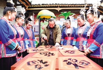 1月31日,柳州市文联深入三江侗族自治县洋溪乡勇伟村开展文艺进万家活动,以现场书写春联、绘制年画及民俗歌舞展演等丰富多彩的文艺活动与当地群众激情联欢,为侗寨送去浓浓的年味。