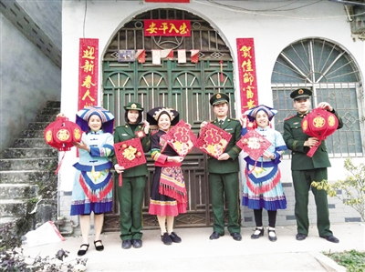 壮族“兵妈妈”陆慧珍高兴地说:“边防派出所的官兵们在新春佳节到来之际,为我们贴春联、送祝福,真是想得太周到了。”