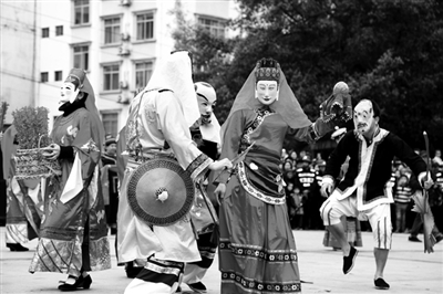 宾阳采茶戏、丝弦戏、石村高跷,马山会鼓,青秀区芭蕉龙等非物质文化遗产表演队和民俗文艺节目表演依次进行展演。环江傩舞代表团展演的毛南族“肥套”《三娘与土地》《纳庭》把现场气氛推向了又一个高潮。精美的民族服装、欢快的舞蹈和诙谐的动作赢得现场观众的阵阵喝彩。