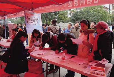 2月26日,融水苗族自治县民族广场人头攒动、人山人海。融水苗族自治县2018年春风行动暨大型招聘会在这里举行,前来参加应聘的人员络绎不绝,空前热闹,各招聘台前咨询者、签订合同者、填写履历者、观看招聘信息者众多,一些热门岗位招聘台被挤得水泄不通。