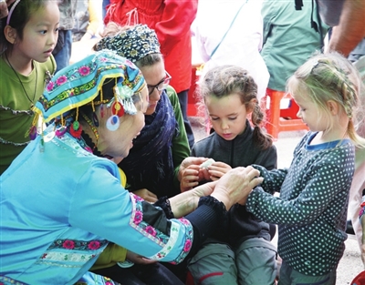 随着恭城瑶族自治县知名度逐步提高,近年到恭城的游客逐年增多。据了解,今年1至2月,该县游客同比增长18%,外国游客增长26%。图为今年元宵节一对法国夫妇带着孩子到该县嘉会镇闹元宵,瑶族群众在教外国孩子们包汤圆。