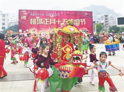 3月2日正值农历正月十五元宵节,在大新县城,近千名当地百姓沿着街道游街巡演。当天,该县桃城镇举办主题为“发扬民俗文化,共建美丽桃城”的正月十五侬垌节民俗活动,通过开展舞龙、舞狮、舞麒麟、游神等民俗文化巡演活动,营造良好的文化氛围,让广大群众度过一个温馨、快乐、祥和的元宵节。