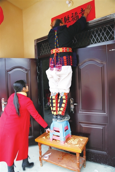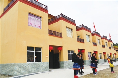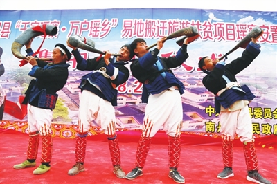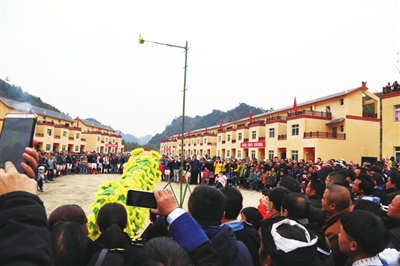 2月6日,在南丹县“千家瑶寨·万户瑶乡”八圩瑶寨安置点,229户1392名白裤瑶同胞集中喜迁新居,他们兴高采烈地以鸣枪、敲铜鼓、打陀螺、吹牛角等瑶族特有的庆祝方式来表达心中的喜悦。