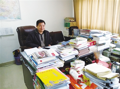 在他的办公室里,办公桌被各种壮文及民族教育书籍包围,他主编及独著的壮文教材和壮文论著,已经著作等身。他为壮语文教材及课外读物编写、壮汉双语教育教学研究工作付出一生的心血。