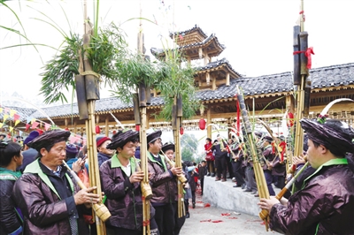小河弯曲穿行,流水潺潺长年不断 ,水泥路两旁果园成片,橘香阵阵,进入“苗寨”大门,凉亭、风雨桥等建筑风格古朴雄浑,工艺奇特精湛,两排苗寨建筑传统风格的民房整齐排列,8部新买的小轿车错落有致地停放在家门口,家家户户墙角摆放的芦笙特别显眼,毛南族、苗族、瑶族、壮族等文艺队在戏台上表演交流民俗歌舞……3月6日,笔者走进环江毛南族自治县思恩镇陈双村双乐屯,看到了这样一个交通便利、产业配套、居住舒适、环境优美的移民新村,宛如画卷一般。