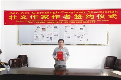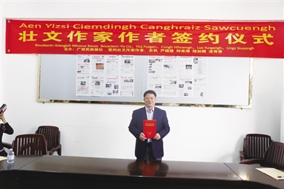 本报讯(记者 赵德飞)3月23日下午,“壮文作家作者签约仪式”在首府南宁举行,主办单位广西民族报社与5位壮文作家作者进行了为期一年的签约。