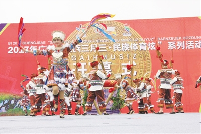 记者从3月31日召开的2018“壮族三月三·民族体育炫”暨体育庙会活动新闻发布会获悉,由国家体育总局批复的全国首个省级体育庙会和广西壮族自治区人民政府部署的2018年“壮族三月三·民族体育炫”活动,将于4月16日至20日在来宾市举行。作为广西唯一的全国全民健身示范城市,来宾市将推出独竹漂、抢花炮、板鞋竞速、狮王争霸赛等100多项高规格民族体育赛事和独具来宾韵味的“三月三”特色节目。