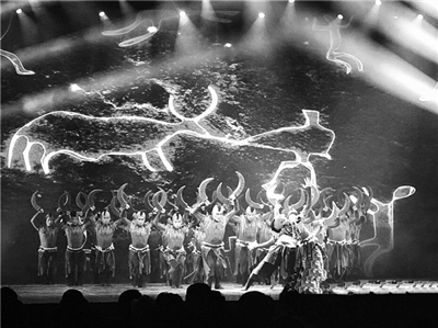 在当晚的《壮族·牛角舞》舞蹈表演中,舞者们身穿壮族服装,饱含热情地跳着牛角舞,以此表现壮族的民俗风情。壮族作为文山壮族苗族自治州的自治民族之一,人口约有103万。每年农历正月初三至十五,壮家人都会跳起牛角舞,祈求来年有一个好的收成。