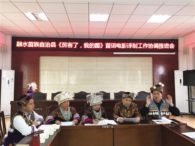 目前,由融水苗族自治县民宗局(文体新广局)组织协调,县民语局等相关部门参与进行的融水版苗语电影《厉害了,我的国》的译制工作正在有序推进,争取在“七一”建党日与观众见面。