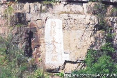 其一是在古代之时已有先例,当年明代皇帝朱厚照的所赐“敕赐永通峡”就分别刻于武宣及桂平两县石壁之上。其中在武宣县城南面黔江右岸璞玉山的悬崖峭壁上,现尚存有明正德十一年(1516)所刻的摩崖石刻一方,上刻“敕赐永通峡”五个大字,上款“正德丙子岁秋曰之吉分守柳庆右参将张佑奉”,下款“总督府太子太保左都御史陈金议钩碑勒石”。由此或可认为:当时名义上的大藤峡(永通峡)起点就在于此地。