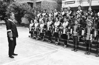 4月26日,在三江侗族自治县富禄乡高安村,侗族大歌国家级非遗传承人覃奶号在指导高安小学的学生们练习演唱侗族大歌。近年来,三江大力推进非遗文化进校园活动,通过开设“非遗课堂”、兴建乡村学校少年宫、聘请或培养专业师资等举措,将侗族大歌、侗族刺绣、侗族农民画、侗族器乐等非遗技艺引入课堂,丰富学生的课余生活,使非遗文化代代相传。