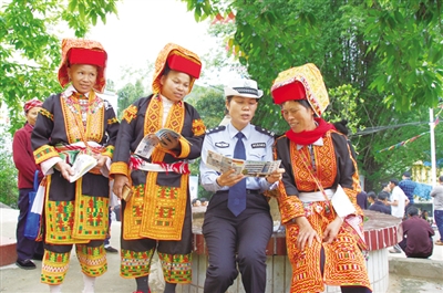 4月27日,中越边关宁明县爱店镇堪爱村传统歌坡节举办第五届山歌比赛,宁明县公安局交警大队利用广大群众积极参与歌坡节的契机,深入歌坡节现场开展“畅行中国,交警同行”“五一”交通安全大提示主题宣传活动。歌坡节当天,该大队民警共发放交通安全宣传资料600多份,悬挂交通安全横幅2条,接受群众咨询53人次,收到了良好的社会效果。