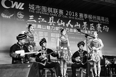 5月20日,城市围棋联赛2018赛季柳州揭幕战在三江侗族自治县仙人山景区开赛,围棋名家齐聚一堂,现场上演一场精彩绝伦的“巅峰对决”。当天,当地侗族群众以茶马游行、采茶、炒茶、百家宴等多彩节目欢庆景区开园,吸引众多游客前往观赏体验。图为当地侗族群众在仙人山景区表演《坐妹》。