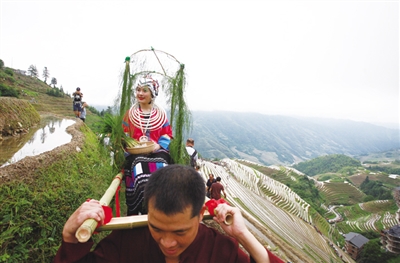 6月2日,龙胜各族自治县龙脊平安壮寨举行一年一度的“梳秧节”,当地群众在高高的梯田上集体开始今年的水稻插秧劳作,宛如一幅幅“天耕”画面。每年芒种前后,龙脊各村寨迎来一年中的耙田、插秧大忙时节,当地群众举办梳秧节,祈求风调雨顺、五谷丰登。