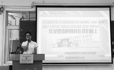 6月19日下午,广西师范学院初等教育学院“壮汉双语论坛·壮汉双语学子风采”在该校长岗校区举行。论坛邀请了壮汉双语班2014级优秀毕业生返校做报告。优秀毕业生代表吴荣冰、韦菲菲、黄志丹分别以《不忘初心 砥砺前行》《壮汉双语的教育在我们肩上》《不经历彩虹怎么能见风雨》为题向壮汉双语系学生讲述了他们在校期间的学习、生活情况以及毕业走上工作岗位后的工作情况、所思所感。