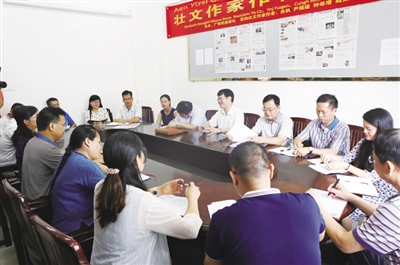 自治区民语委民族语文应用处有关负责人、“壮文一报一刊”领导和编辑记者共30余人参加座谈。
