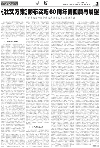 壮族是全国人口最多的少数民族,目前全国壮族人口1800多万人。广西是壮族世居人口最多的省区,壮族人民世代使用自己的母语——壮语作为主要交际工具,对壮语有深厚的民族感情和认同感。1957年11月29日,周恩来总理主持召开国务院第63次全体会议,正式批准《壮文方案》,并同意在壮族地区推行使用,壮族人民从此结束了只有语言,没有统一、合法文字的历史。60年来,通过不断创新推行使用形式,壮语文在广西得到长足的发展、广泛的认同和运用,走上了一条壮汉双语和谐发展之路。