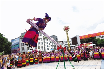 每年的农历六月二十四,是彝族的传统节日火把节。今年,西林县八达镇举办以“激情火把 助推脱贫”为主题的彝族火把节。当日,彝族同胞举办山歌比赛、送布谷鸟、摏糍粑、打磨秋、抢亲、抹黑脸、篝火晚会等丰富多彩的民俗活动庆祝自己的传统节日。活动现场人头攒动,热闹非凡。